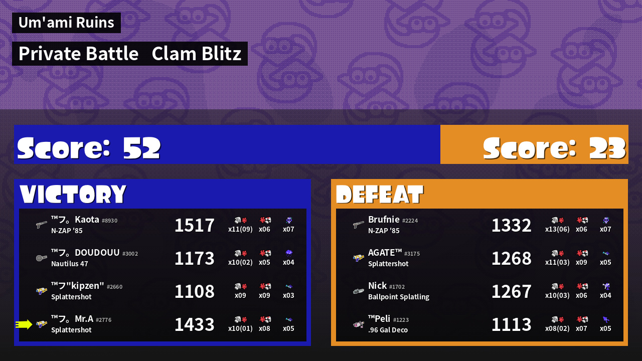 Kills / Deaths | 9 + 1 / 8 > Kill Ratio: 1.12 | ||