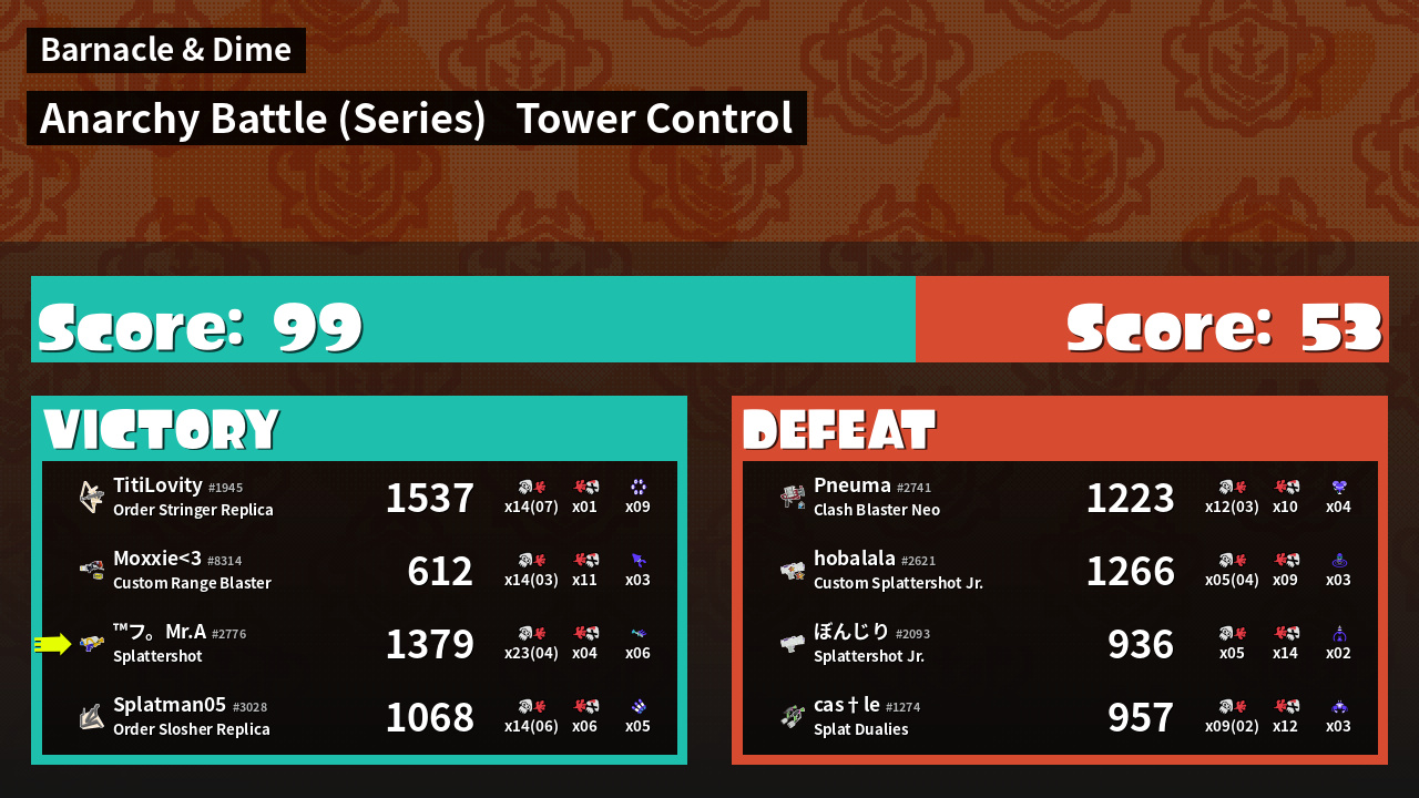 | Mode | Tower Control - Anarchy Battle (Series) | ||