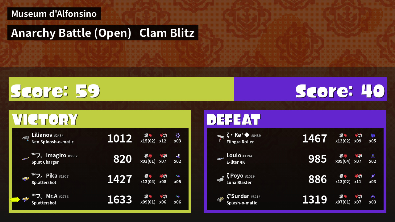 | Mode | Clam Blitz - Anarchy Battle (Open) | ||