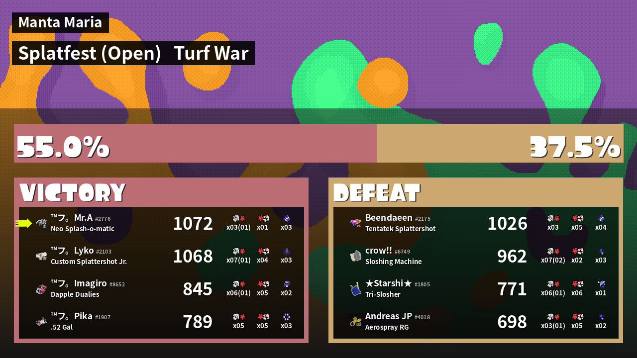 | Medals | #1 Turf Inker #1 Super Jump Spot #1 Splat Assister | ||