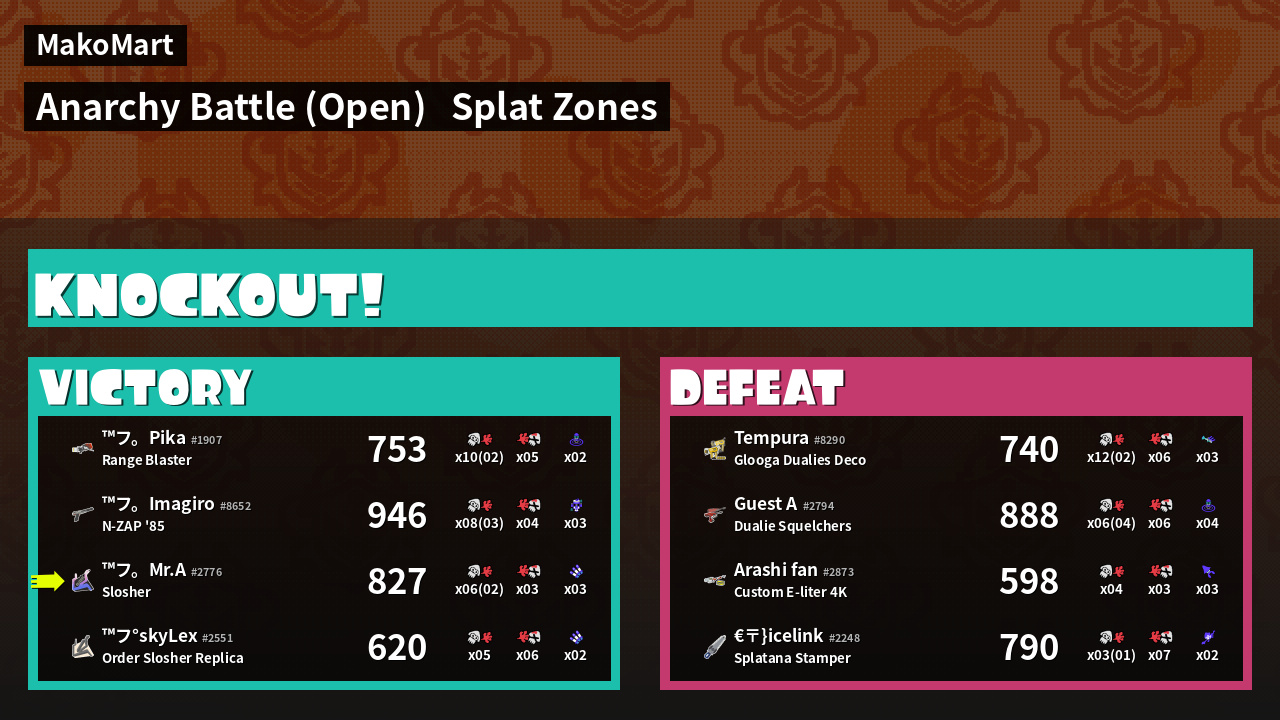 | Mode | Splat Zones - Anarchy Battle (Open) | ||