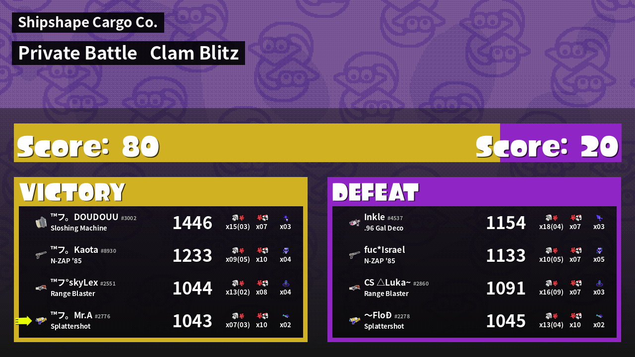 | Mode | Clam Blitz - Private Battle | ||