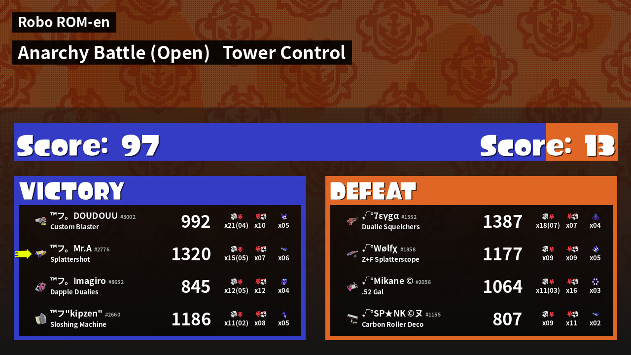 | Mode | Tower Control - Anarchy Battle (Open) | ||
