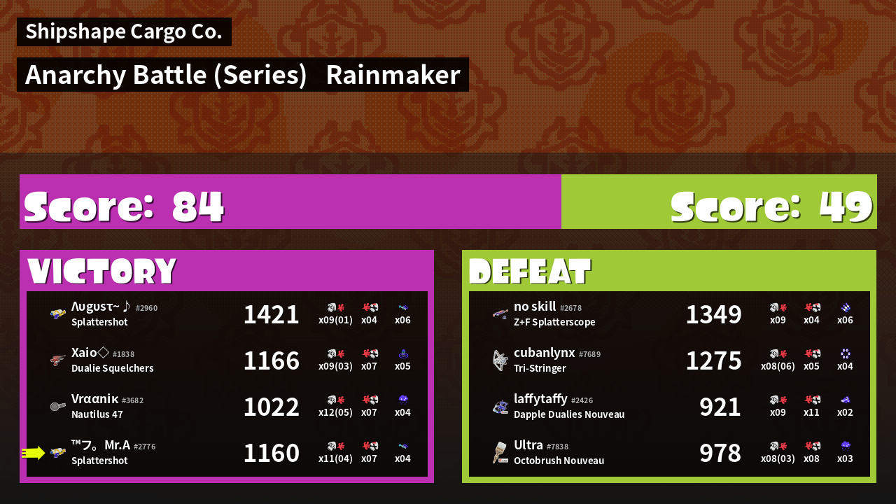 | Mode | Rainmaker - Anarchy Battle (Series) | ||