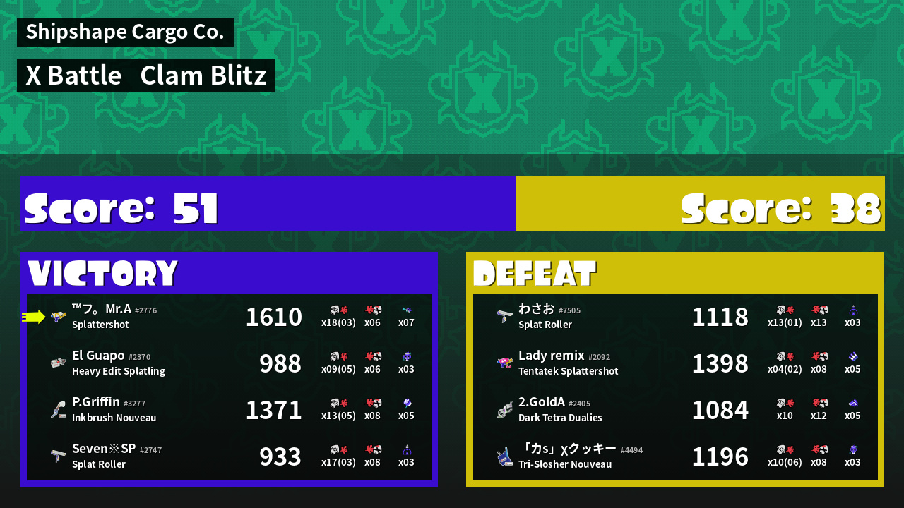 | Medals | #1 Overall Splatter #1 Turf Inker #1 Enemy Splatter | ||