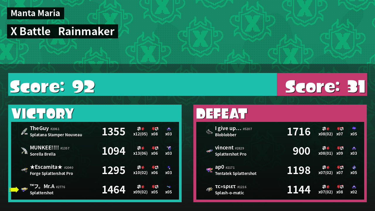 | Weapon | Splattershot ( Suction Bomb / Trizooka) | ||