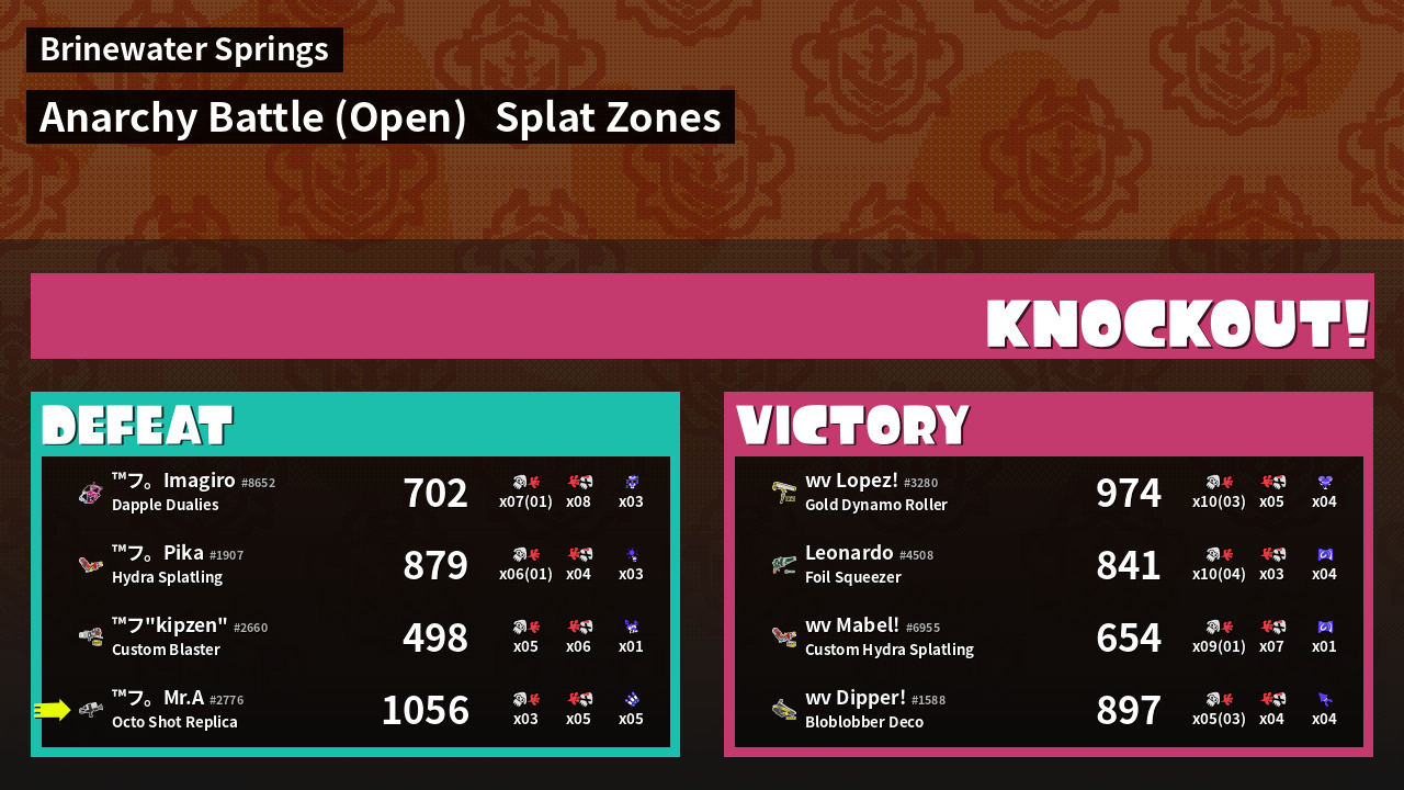 | Mode | Splat Zones - Anarchy Battle (Open) | ||