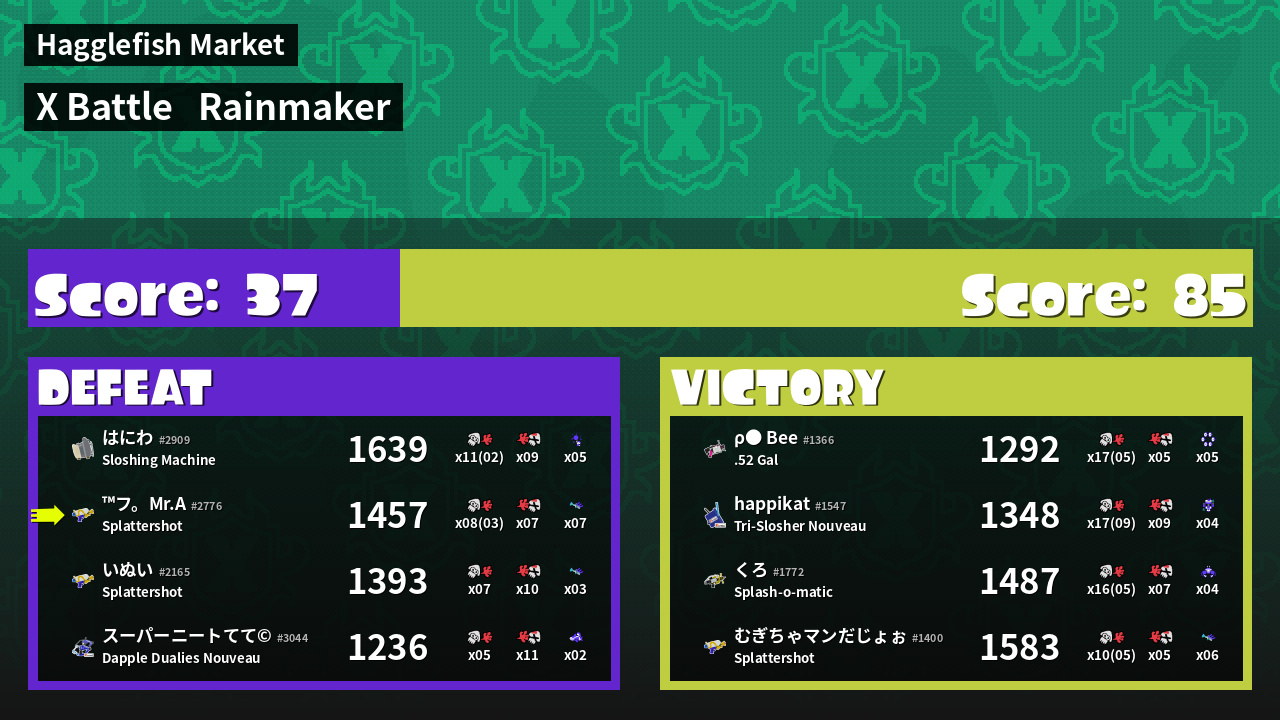 | Medals | #1 Super Jump Spot #1 Splat Assister #1 Damage Taker | ||
