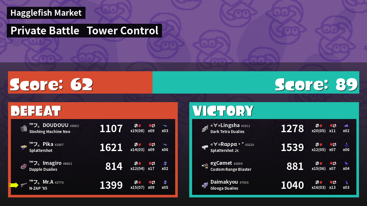| Medals | #1 Tower Stopper #1 Tacticooler User #2 Overall Splatter | ||