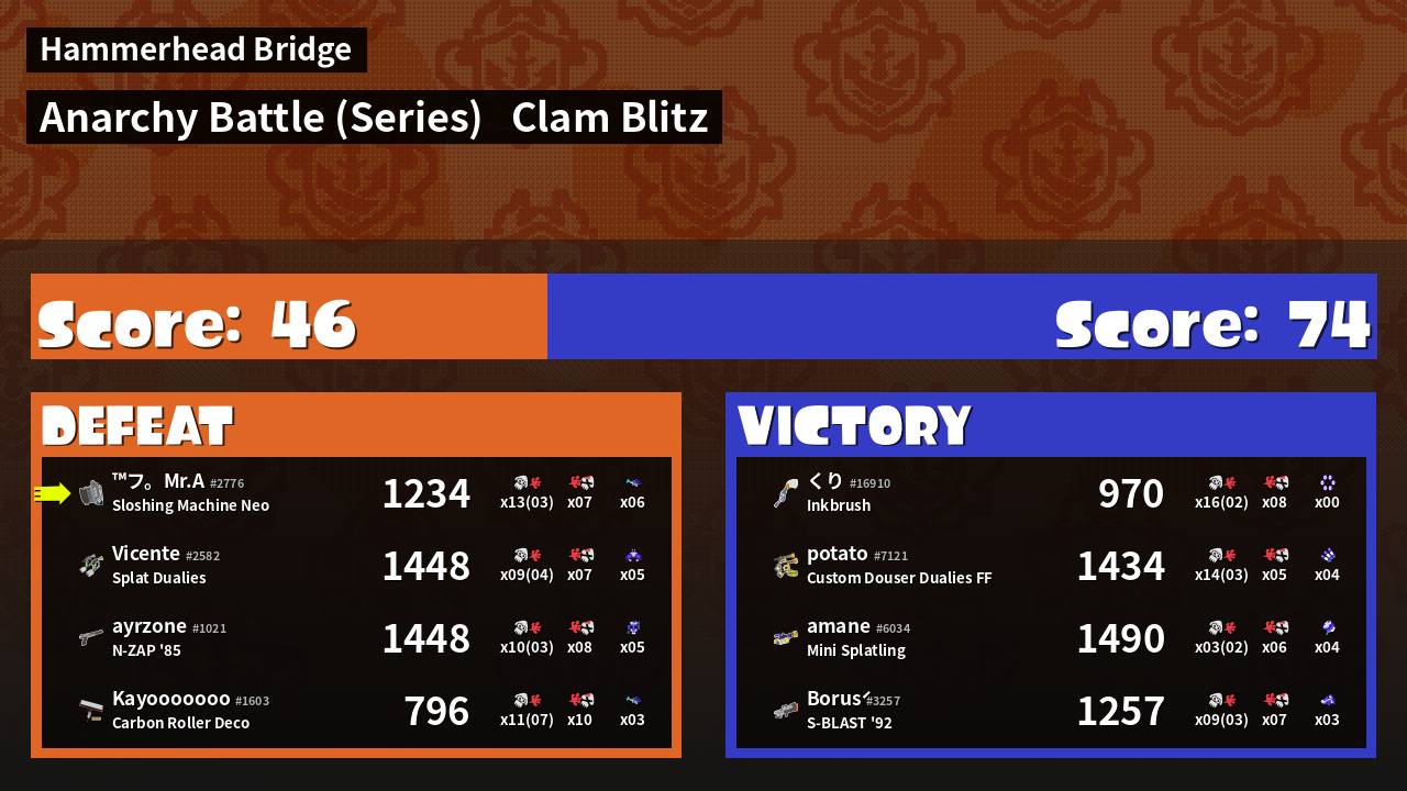 | Mode | Clam Blitz - Anarchy Battle (Series) | ||
