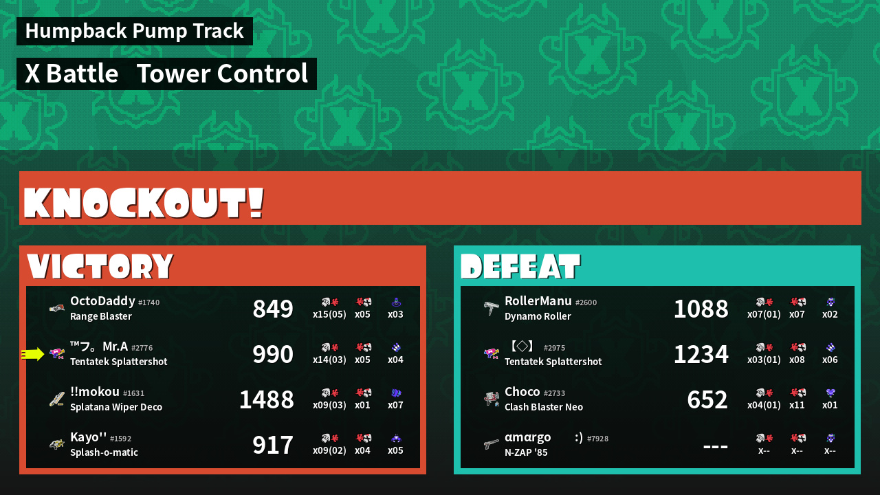 | Weapon | Tentatek Splattershot ( Splat Bomb / Triple Inkstrike) | ||