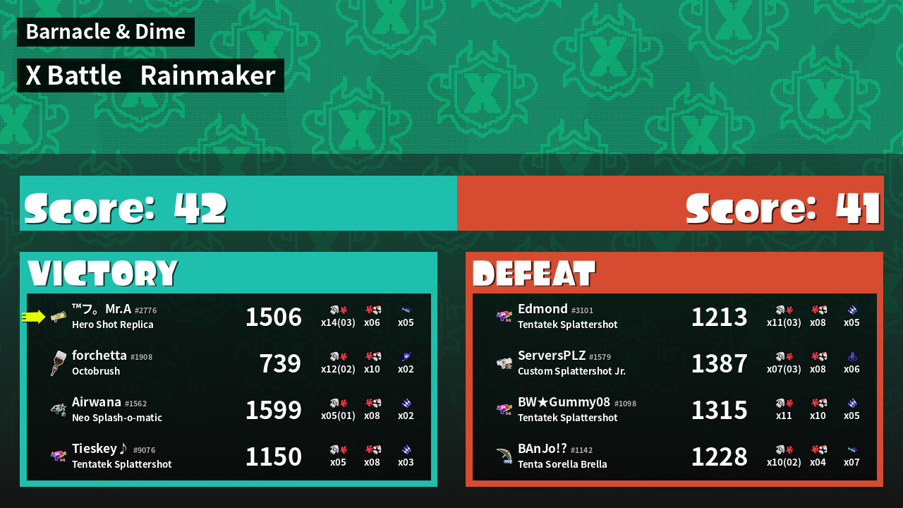| Medals | #1 Overall Splatter #1 Super Jump Spot #1 Enemy Splatter | ||