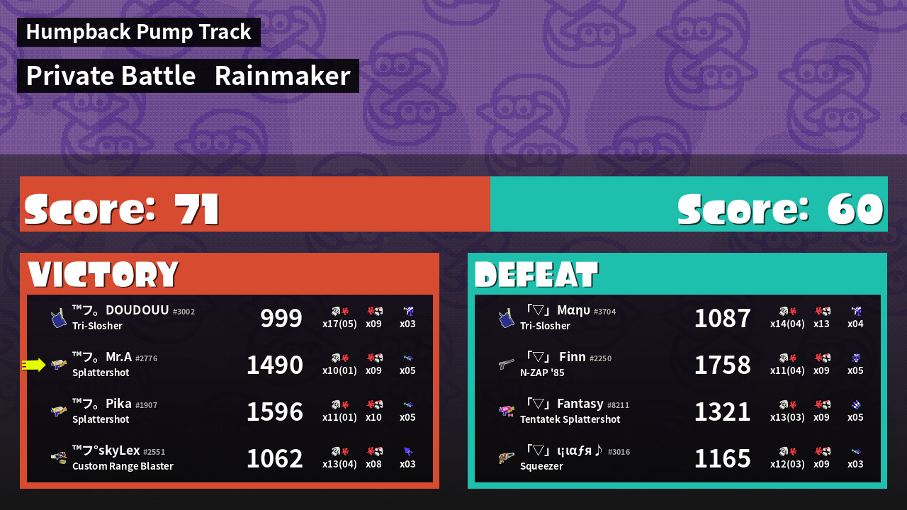 Kills / Deaths | 9 + 1 / 9 = Kill Ratio: 1.00 | ||