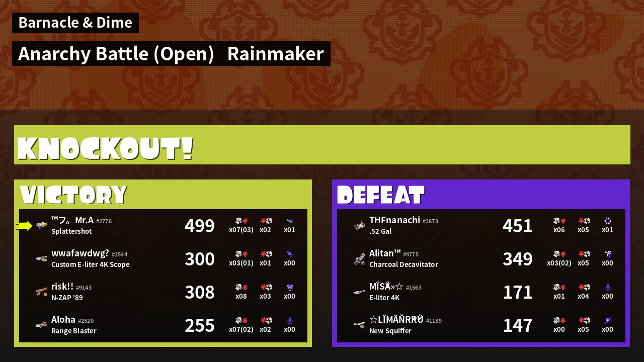 | Mode | Rainmaker - Anarchy Battle (Open) | ||