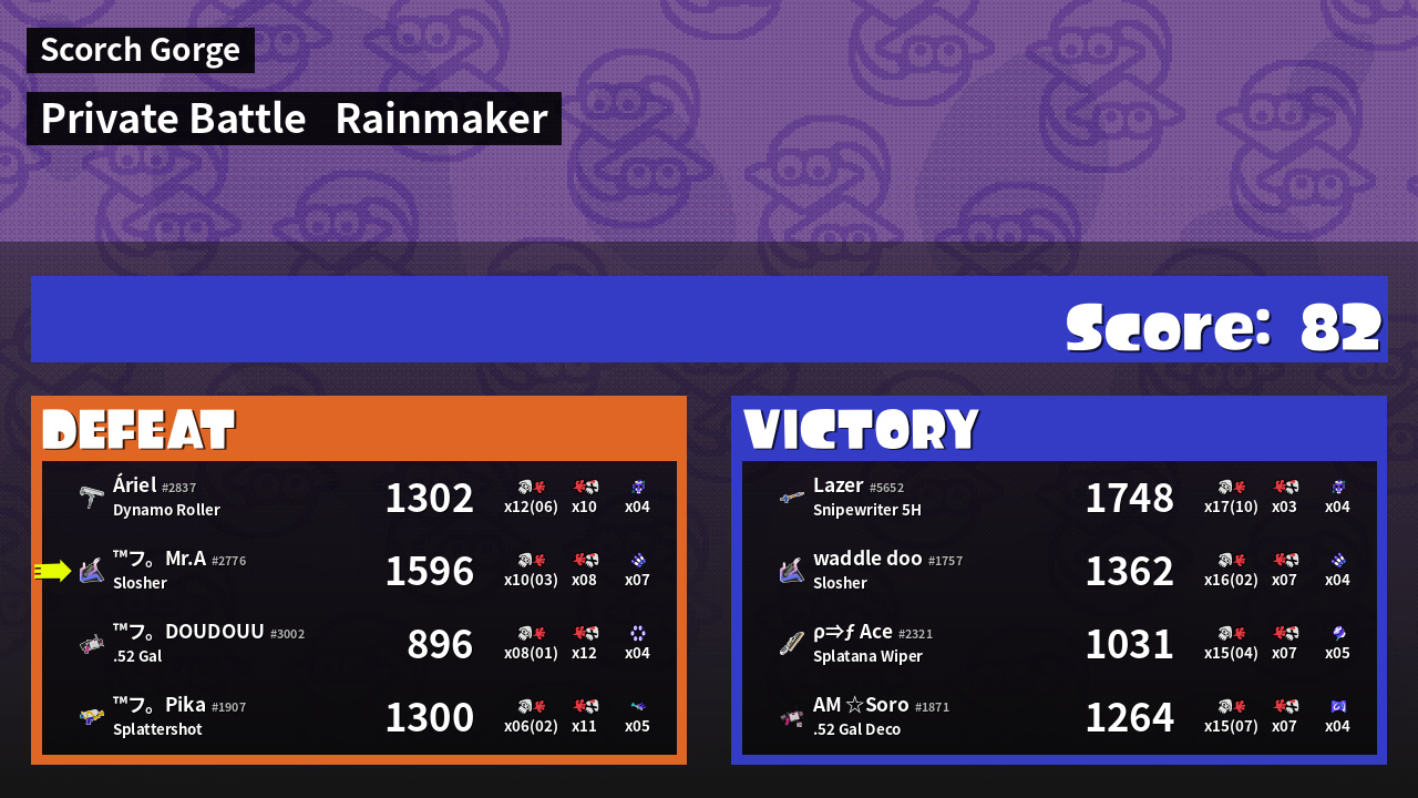 | Medals | #1 Turf Inker #1 Super Jump Spot #1 Enemy Splatter | ||