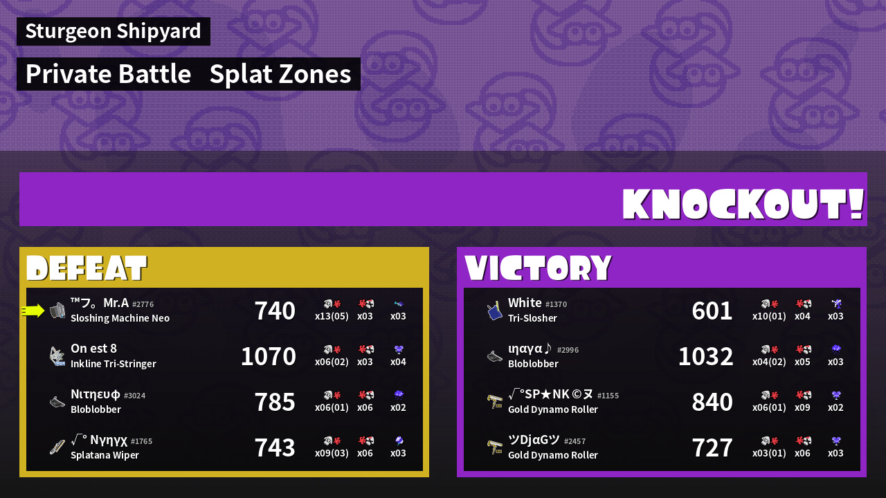 | Mode | Splat Zones - Private Battle | ||