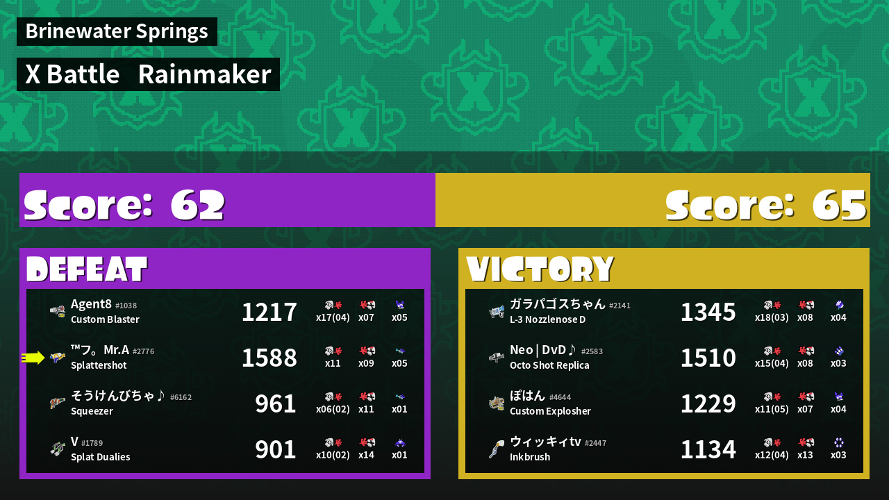 | Mode | Rainmaker - X Battle | ||