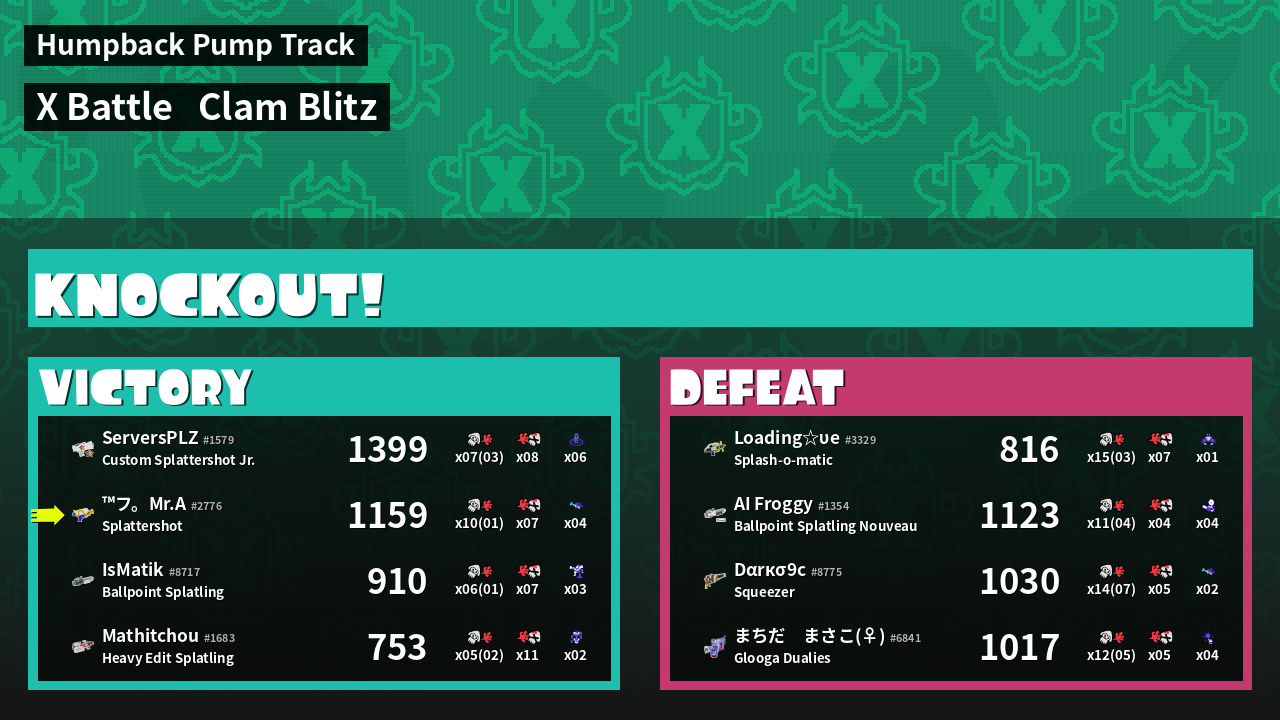 | Mode | Clam Blitz - X Battle | ||