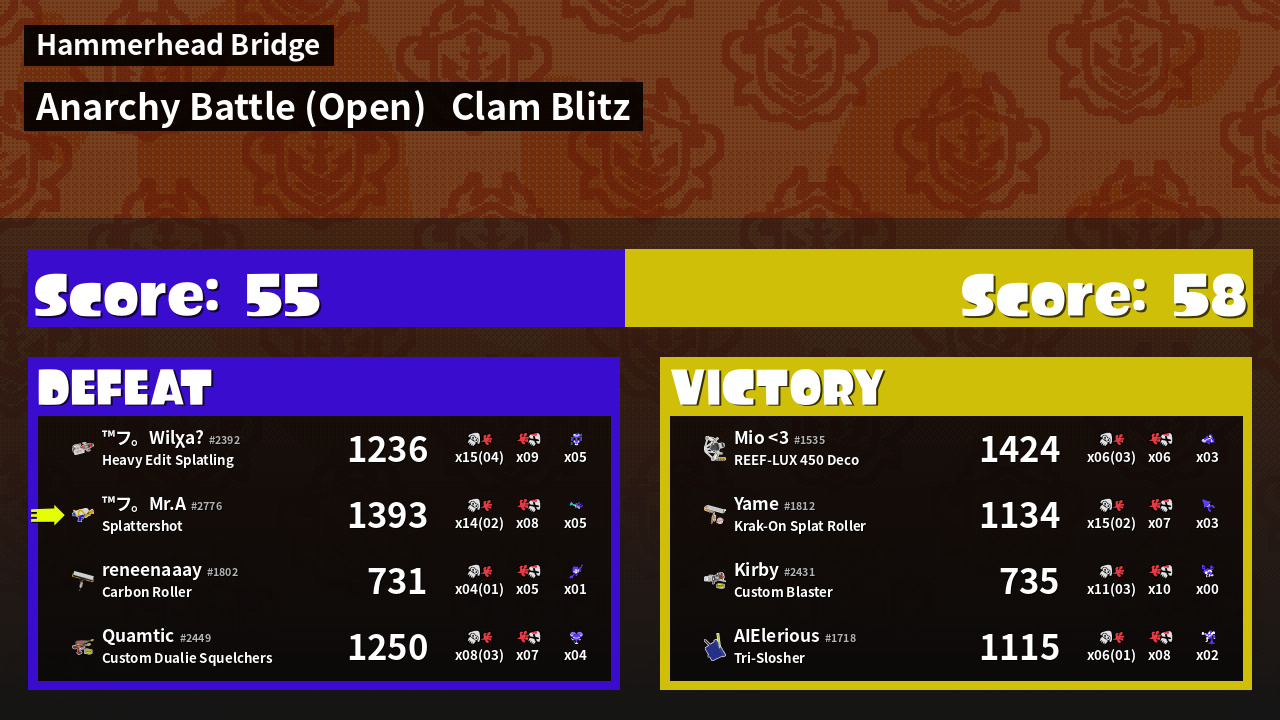 | Mode | Clam Blitz - Anarchy Battle (Open) | ||