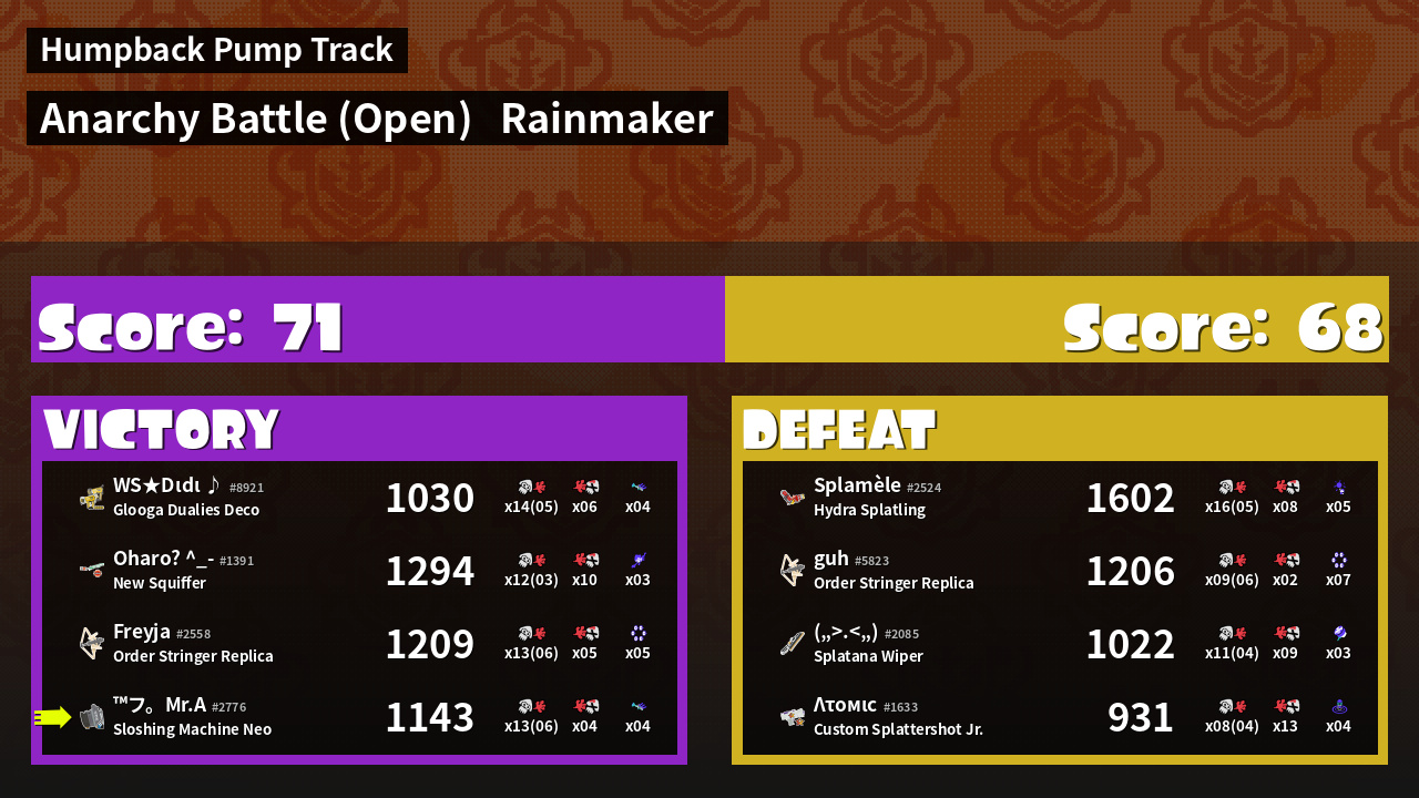 | Mode | Rainmaker - Anarchy Battle (Open) | ||