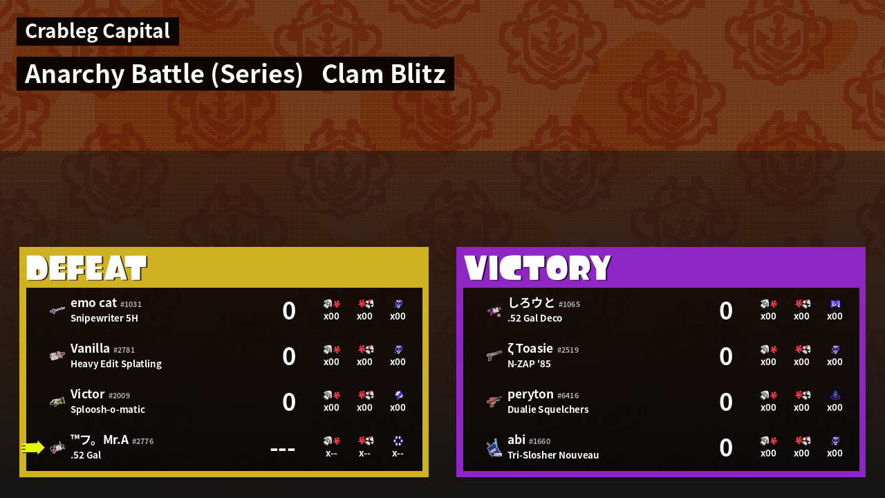 | Mode | Clam Blitz - Anarchy Battle (Series) | ||