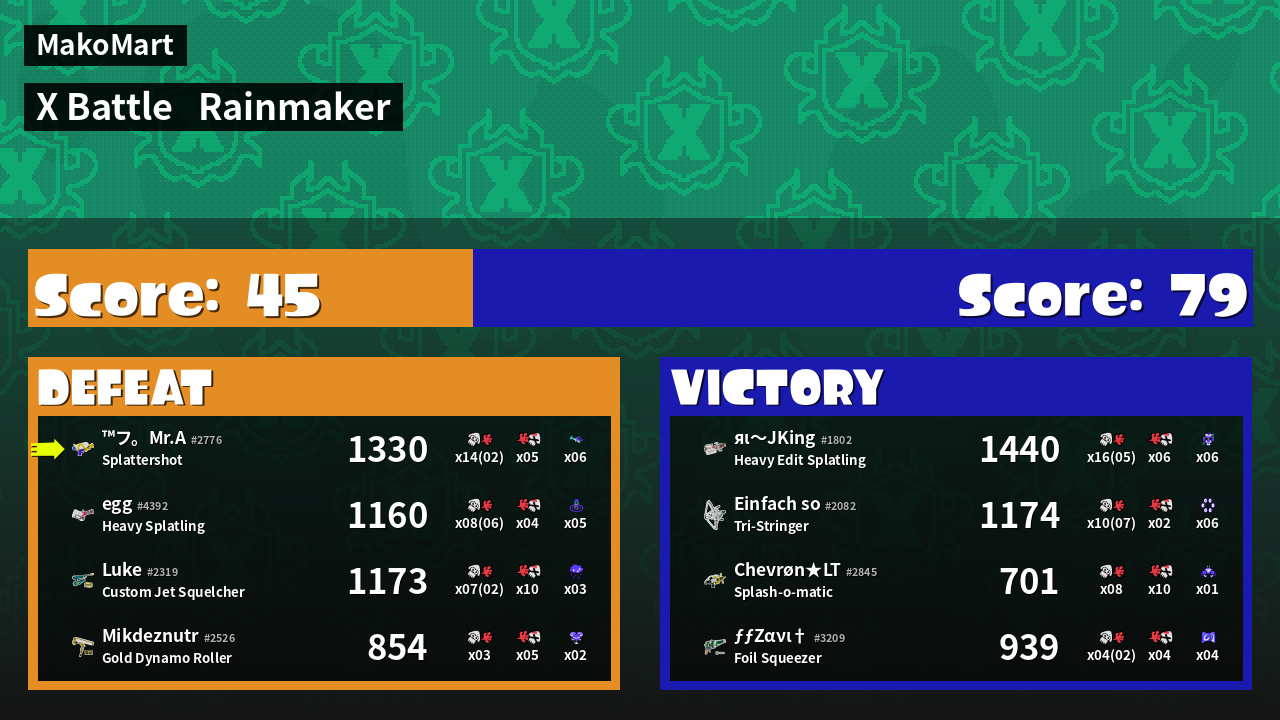 | Medals | #1 Overall Splatter #1 Turf Inker #1 Super Jump Spot | ||