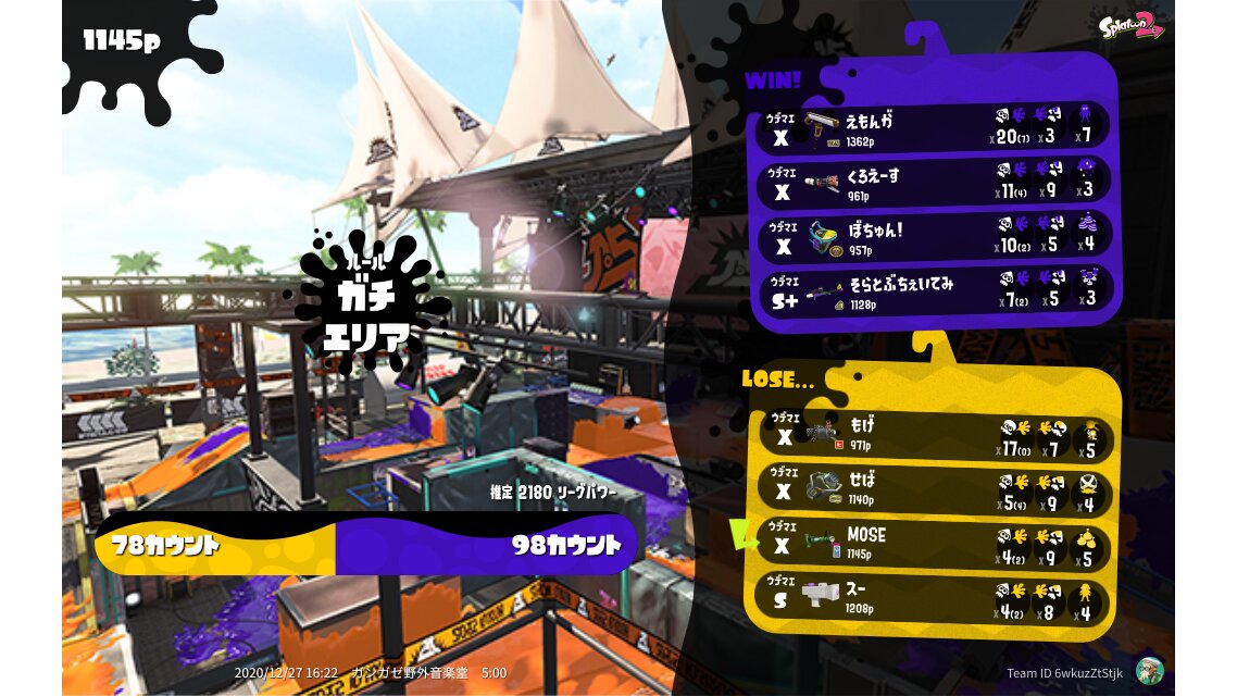 | Mode | Splat Zones - League Battle (Quad) | |||||||||||||||||||||||||||||||||||||