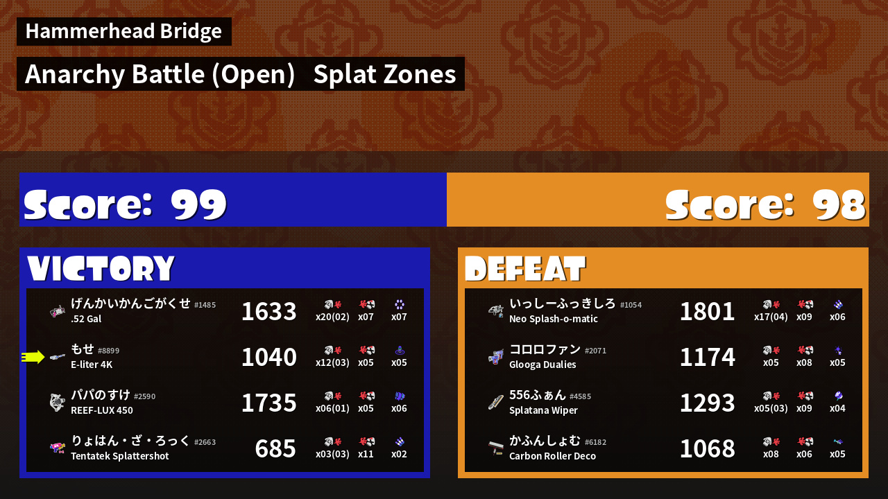 | Mode | Splat Zones - Anarchy Battle (Open) | ||