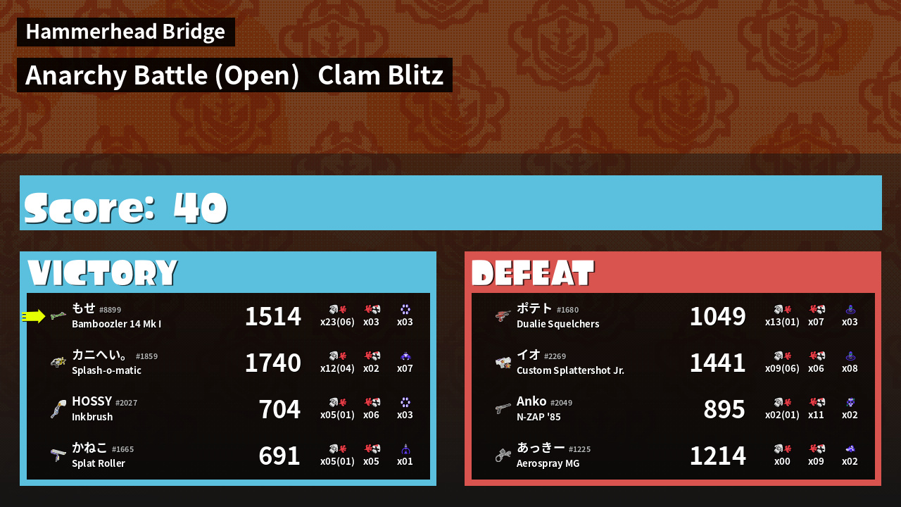 | Mode | Clam Blitz - Anarchy Battle (Open) | ||