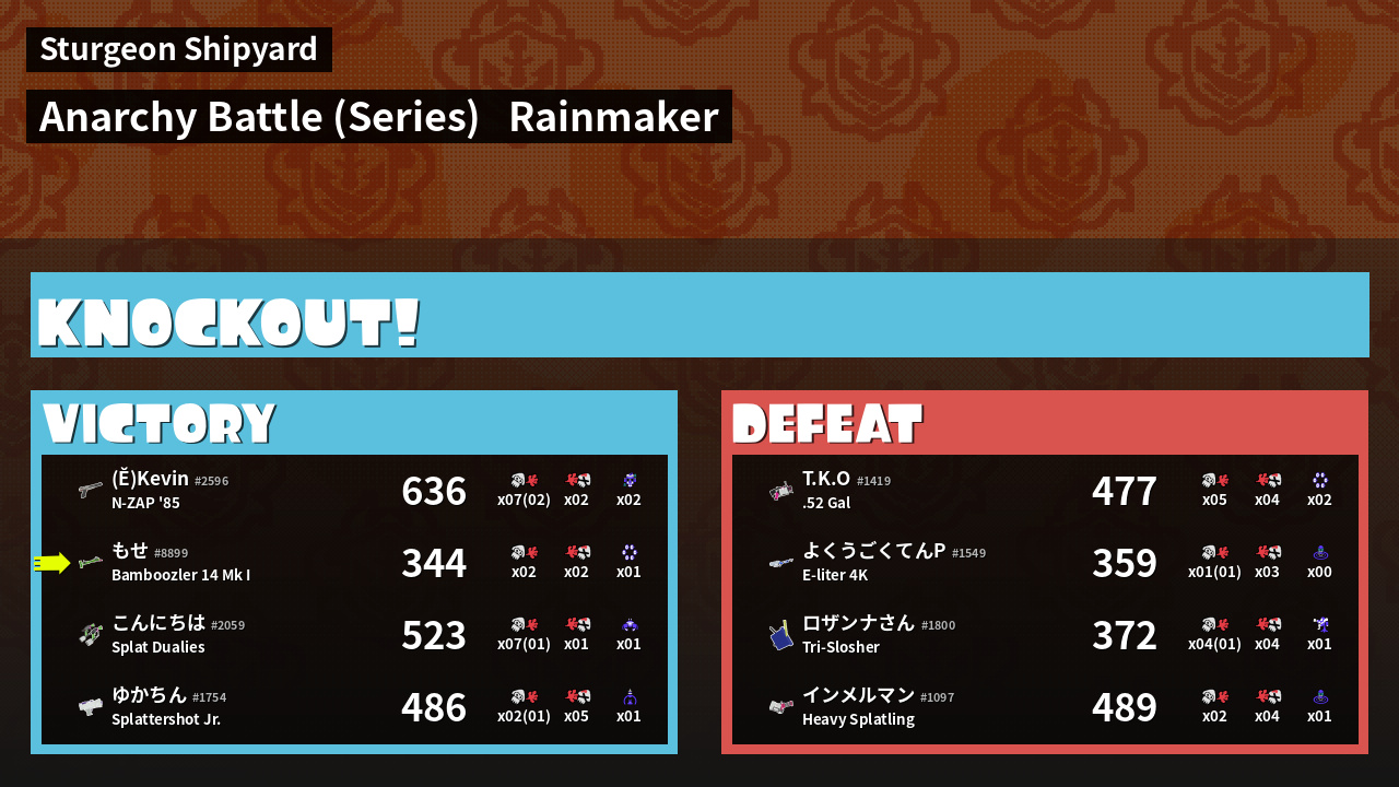 | Name | Weapon | Inked |  k |  d | KR | Sp | |