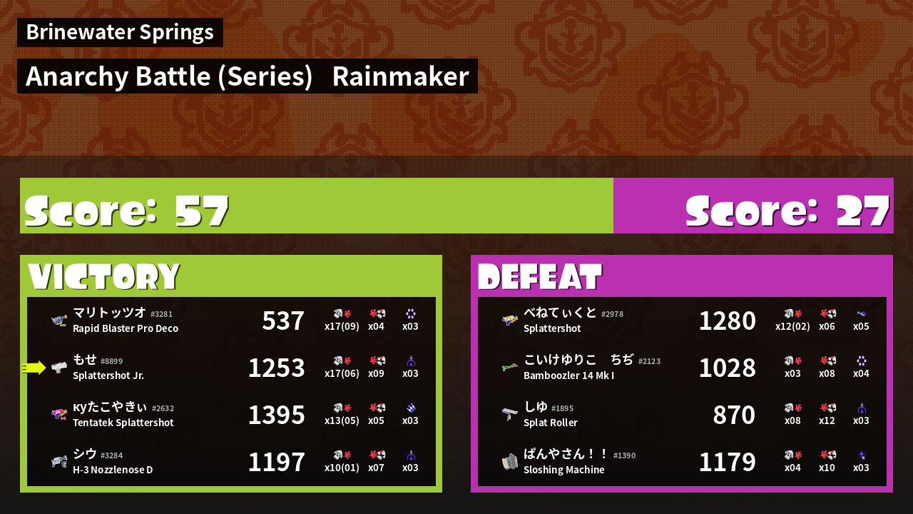 | Mode | Rainmaker - Anarchy Battle (Series) | ||