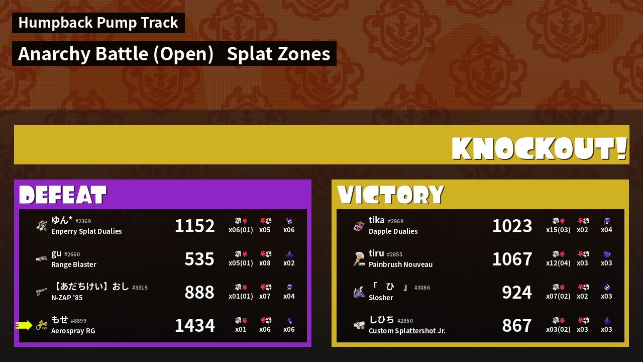 | Mode | Splat Zones - Anarchy Battle (Open) | ||