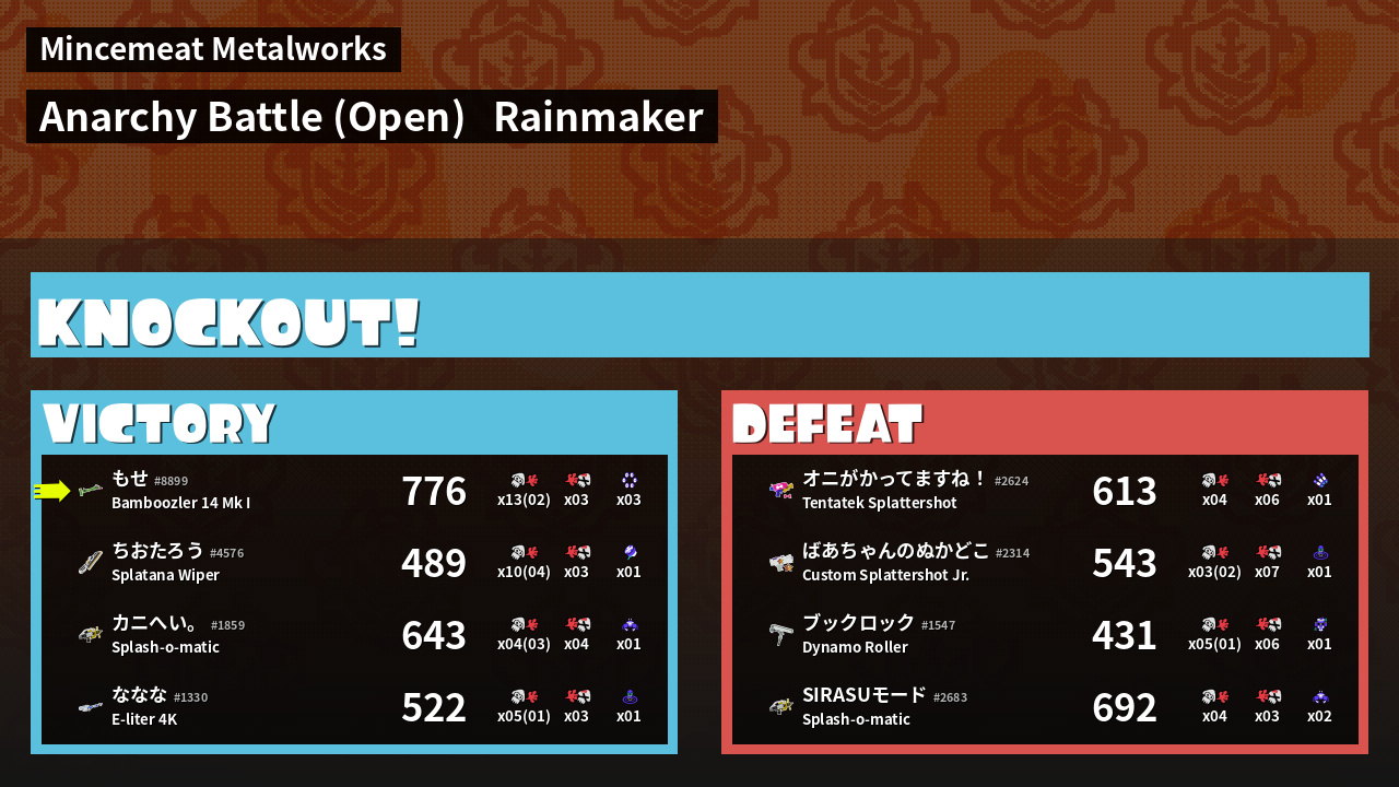 Kills / Deaths | 11 + 2 / 3 > Kill Ratio: 3.67 | ||