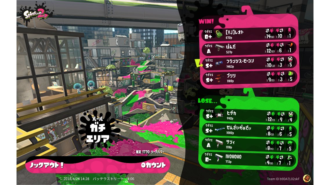 | Mode | Splat Zones - League Battle (Twin) |
