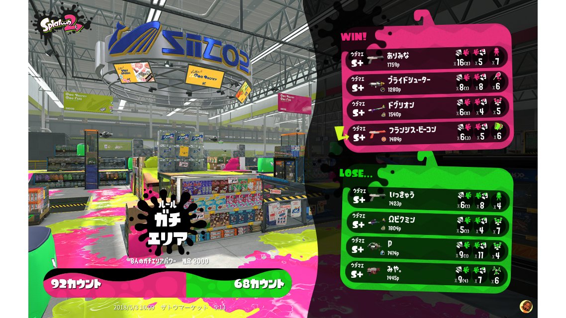 | Mode | Splat Zones - Ranked Battle | ||||||||||||||||||||||||||||||||||