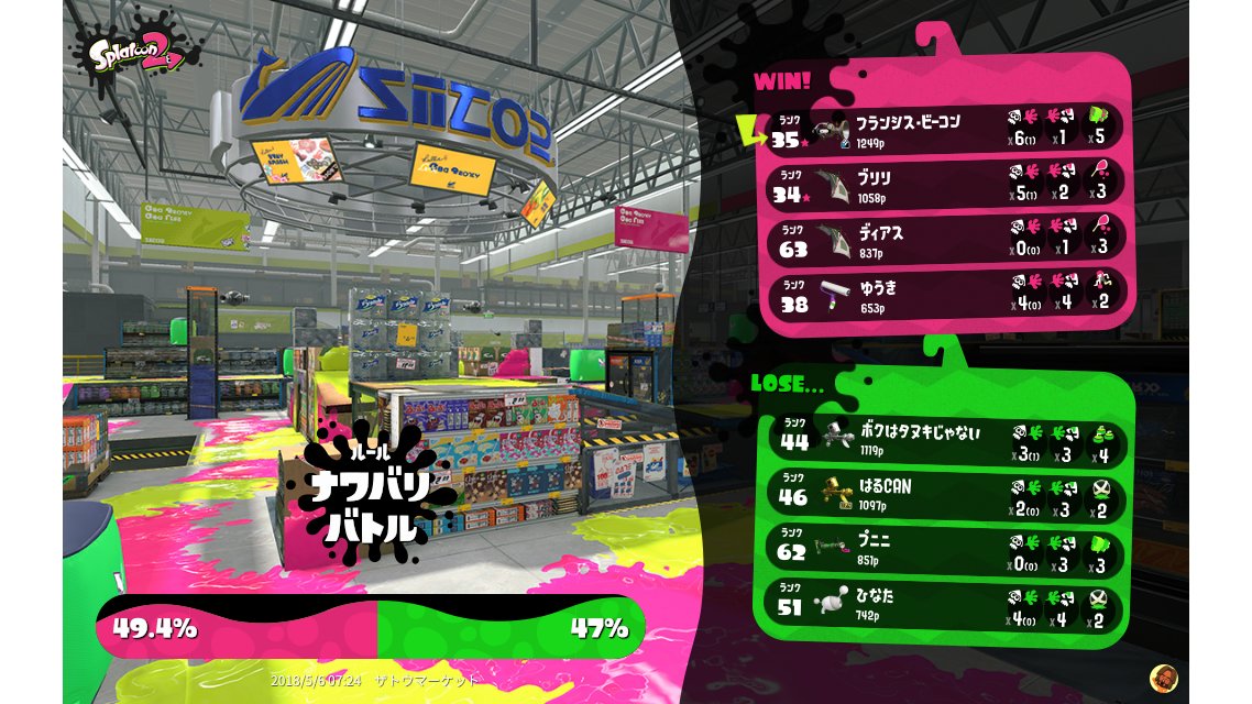 | Mode | Turf War - Regular Battle | |||||||||||||||||||||||||||||||||||||||||||