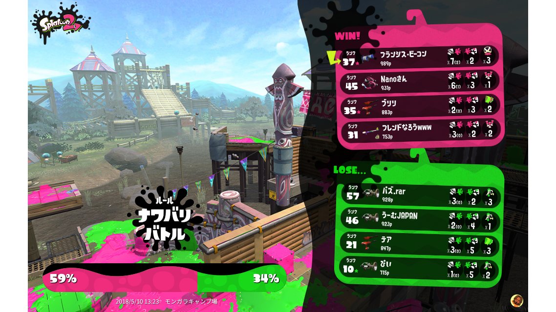 | Mode | Turf War - Regular Battle | |||||||||||||||||||||||||||||||||||||