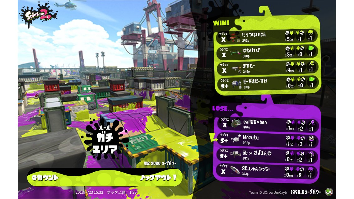 | Mode | Splat Zones - League Battle (Quad) | ||||||||||||||||||||||||||||||||||||||||
