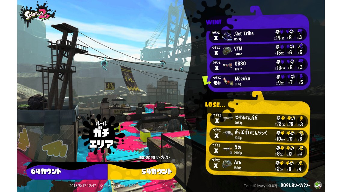 | Mode | Splat Zones - League Battle (Quad) | |||||||||||||||||||||||||||||||