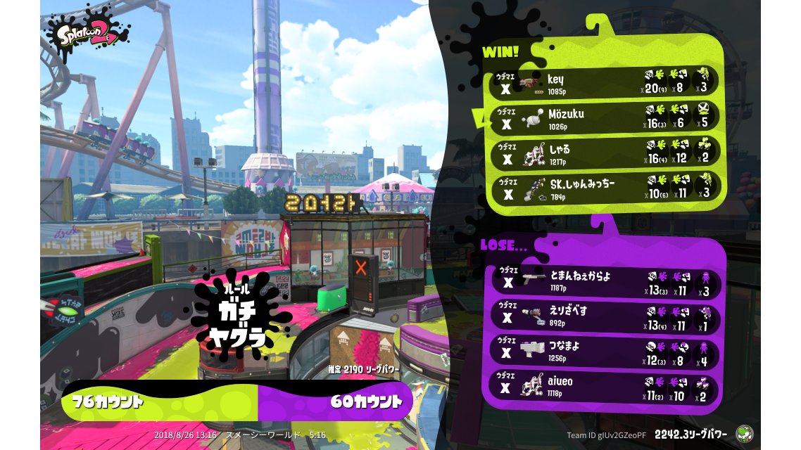 | Name | Weapon | Level | Rank | Inked | k+a/sp | k/d |