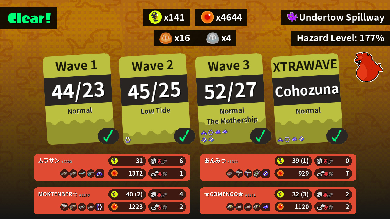 | Weapons | Grizzco Charger Grizzco Charger Classic Squiffer Jet Squelcher | Flingza Roller Squeezer Splattershot Nova Grizzco Charger | Dualie Squelchers Dynamo Roller Splat Roller Splat Dualies | Splash-o-matic Grizzco Charger Grizzco Charger Sploosh-o-matic |
