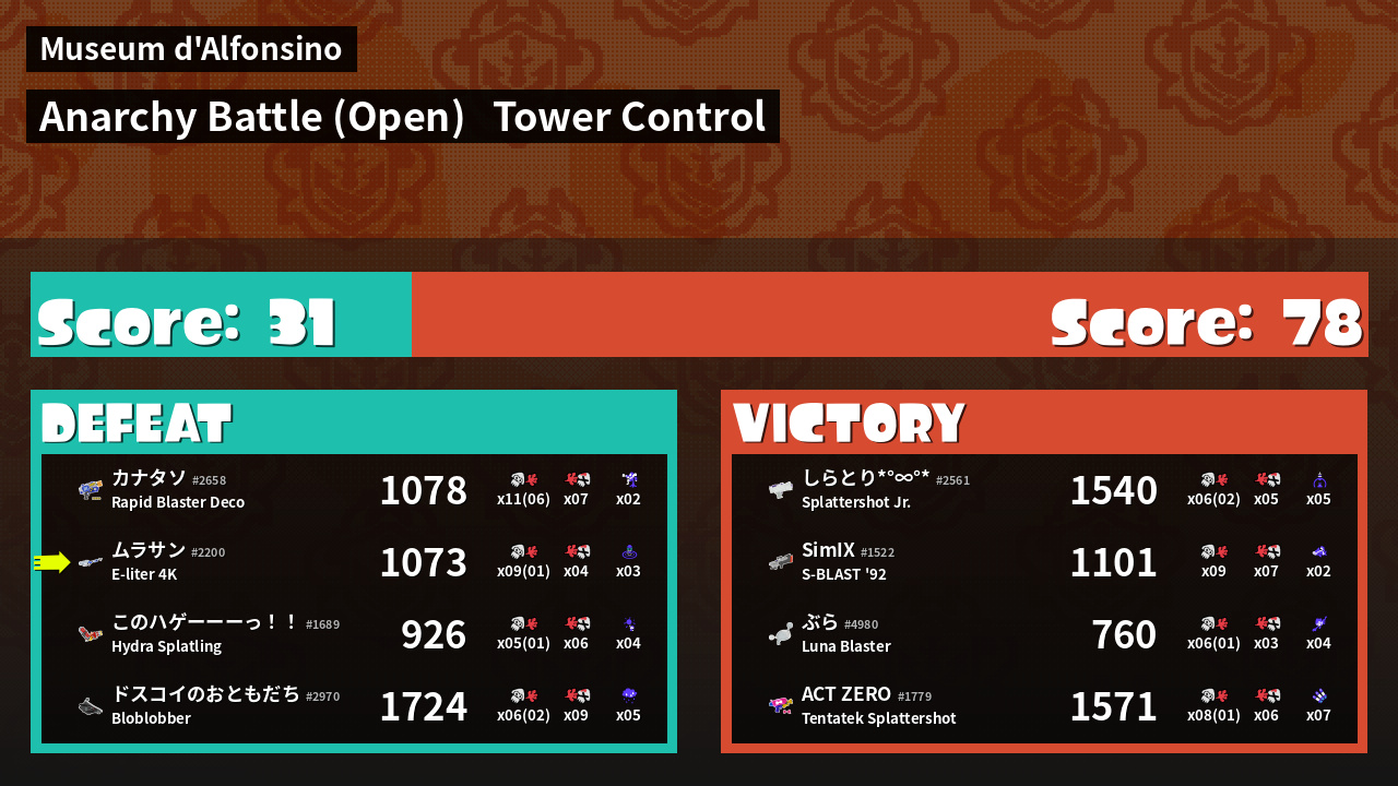 | Mode | Tower Control - Anarchy Battle (Open) | ||