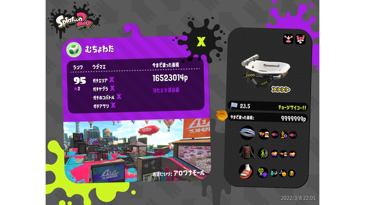 SplatNet Battle # | 18,669 | ||||||||||||||||||||||||||||||||||||||||||||||