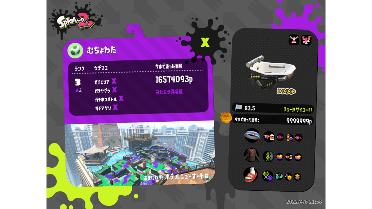 SplatNet Battle # | 19,055 | ||||||||||||||||||||||||||||||||||||||||||||||