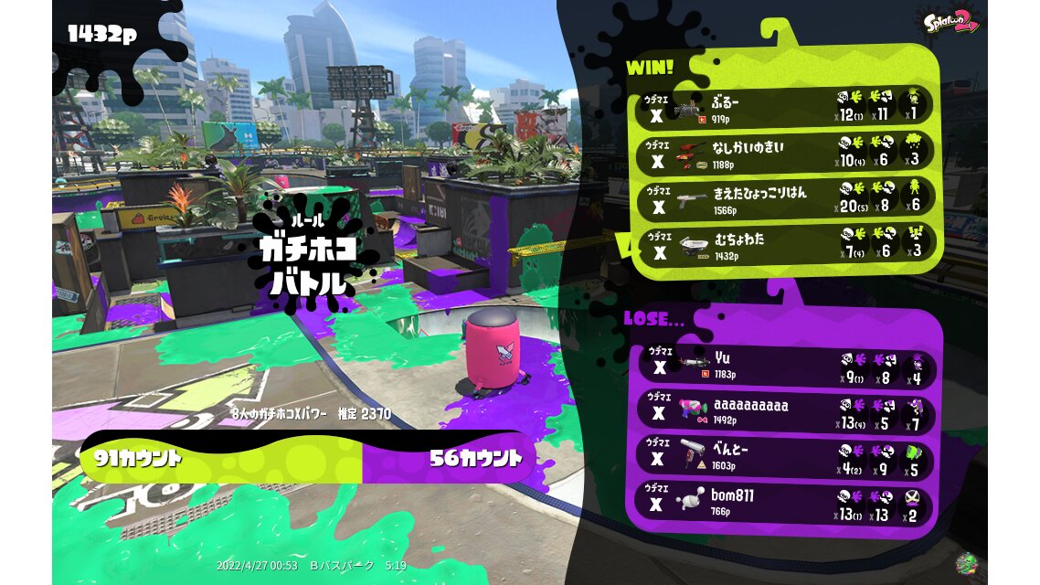 SplatNet Battle # | 19,438 | |||||||||||||||||||||||||||||||||||||||||||