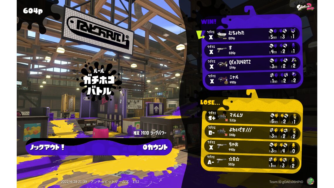 SplatNet Battle # | 19,454 | ||||||||||||||||||||||||||||||||||||||||||||||