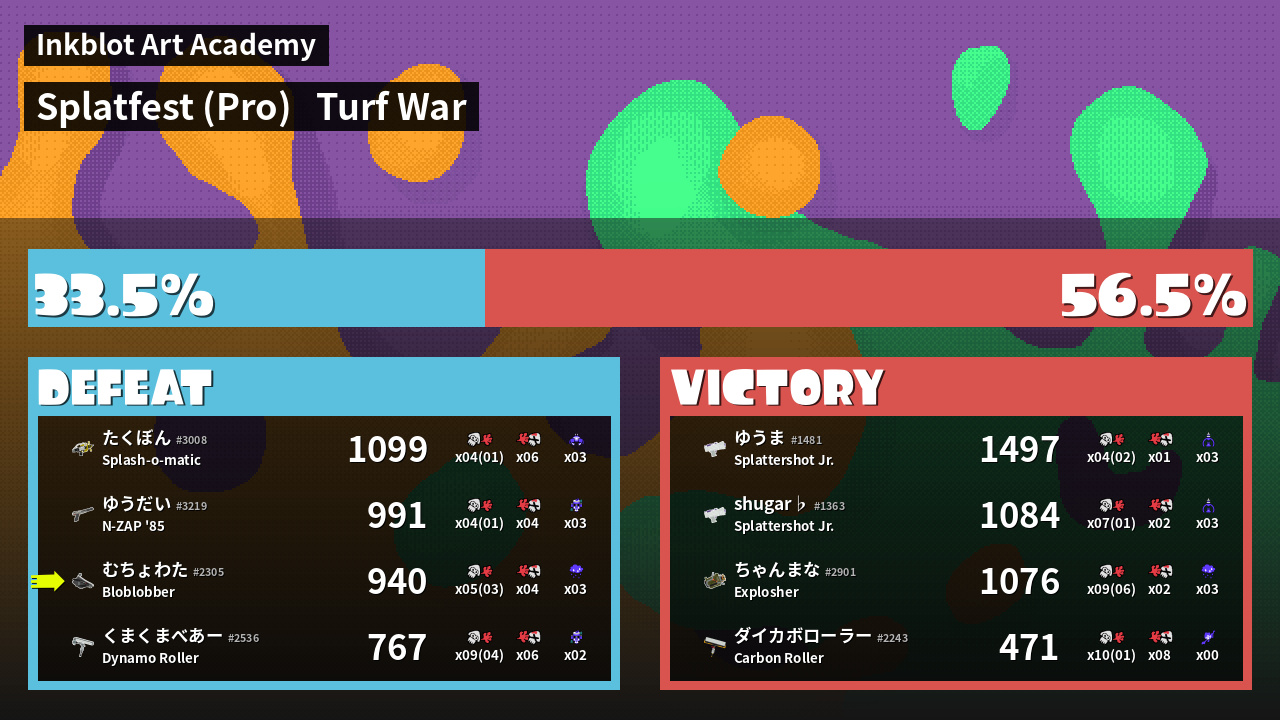 | Mode | Turf War - Splatfest (Pro) | ||