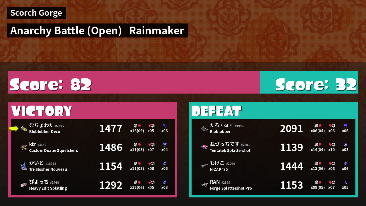 | Mode | Rainmaker - Anarchy Battle (Open) | ||