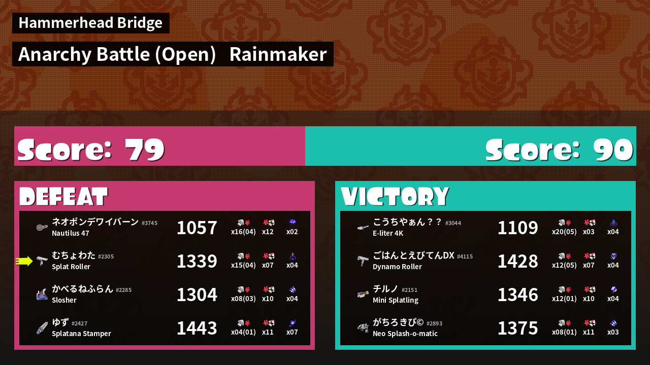 | Medals | #1 Super Jump Spot #1 Splat Assister #1 Rainmaker Carrier | ||