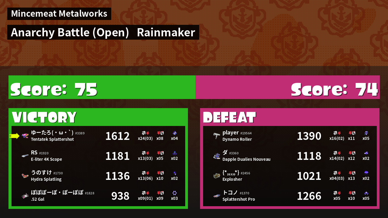 | Mode | Rainmaker - Anarchy Battle (Open) | ||